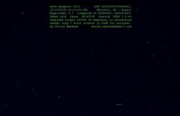 2013/08/19: Observacao de Nova Delphini 2013 (PNV J20233073+2046041):