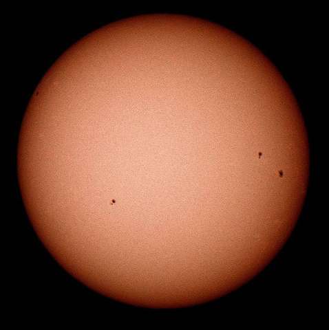 Algumas fotos do Sol, de disco inteiro e em seguida com maior aumento para mostrar detalhes de manchas solares: